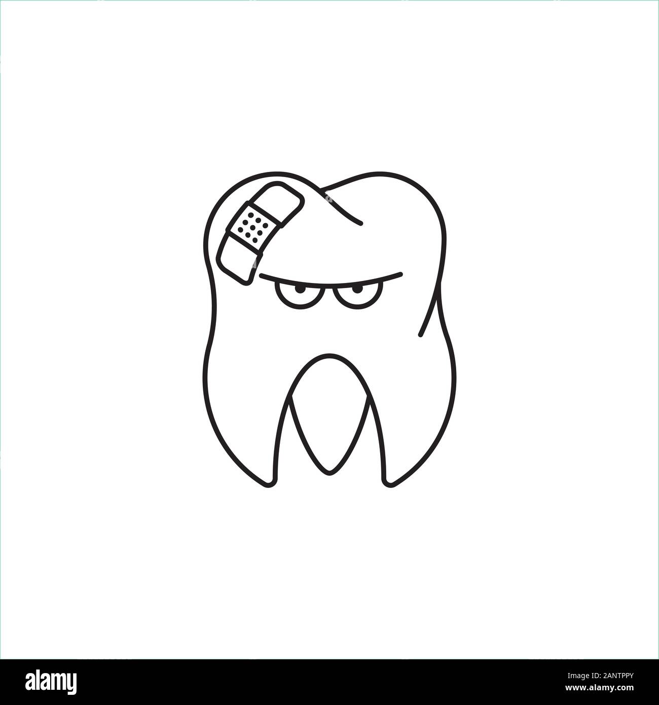Annoyedly Looking Tooth With Band Aid Vector Line Icon Toothache And Pain Conceptual Symbol Stock Vector Image Art Alamy